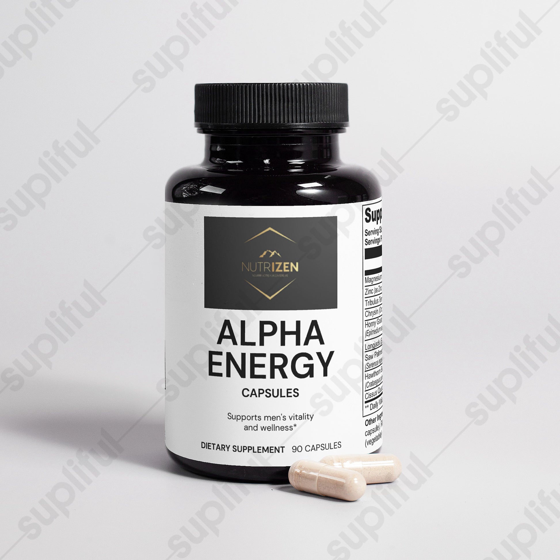 Support Men's Vitality and Wellness: Our carefully crafted dietary supplement is designed to promote men's health and well-being without containing testosterone. Formulated with a blend of key nutrients including magnesium, zinc, tribulus terrestris, chysin, horny goat weed, longjack, saw palmetto berries, hawthorn berries, and cissus quadrangularis, our product supports various aspects of men's health. *