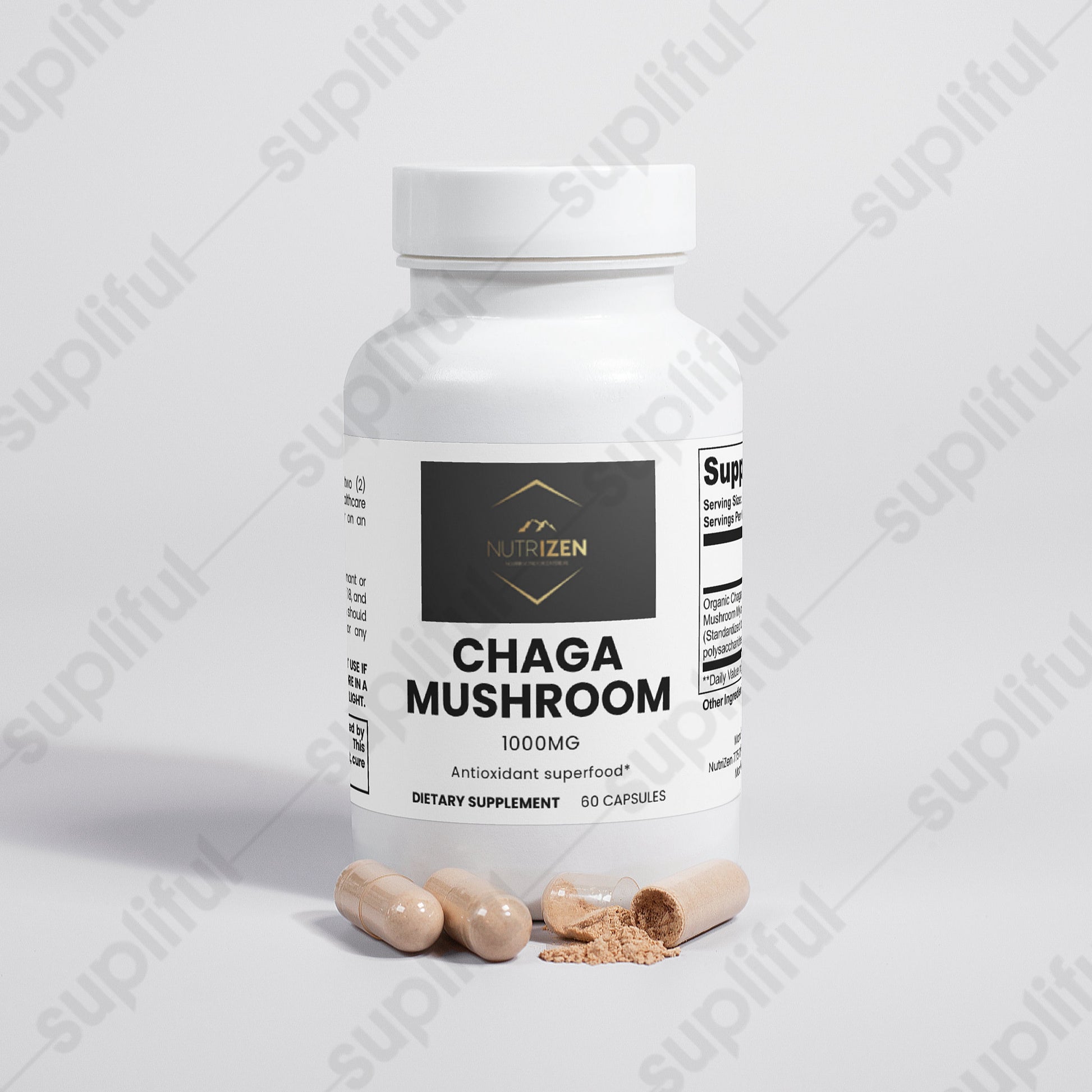 Ingredients: Organic Chaga (Inonotus obliquus) Mushroom Mycelium Powder (Standardized to 40% polysaccharides [400mg]), Organic capsule (pullulan, water), silica.