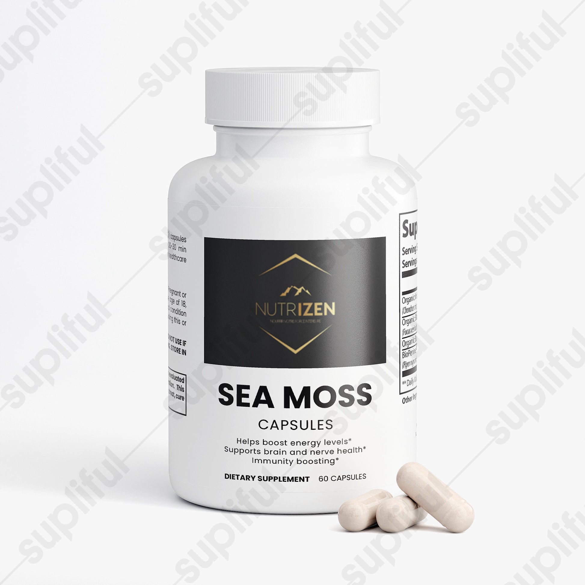 Ingredients: Organic Irish Moss, Organic Bladderwrack, Organic Burdock, BioPerine®, Pullulan Capsules.